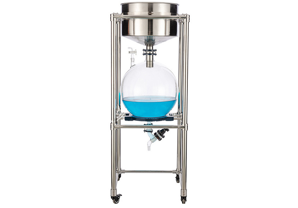 4、下放料部分為玻璃法蘭口配套特殊設(shè)計聚四氟閥門,容器內(nèi)無死角,可拆卸便于固體物料出料;
