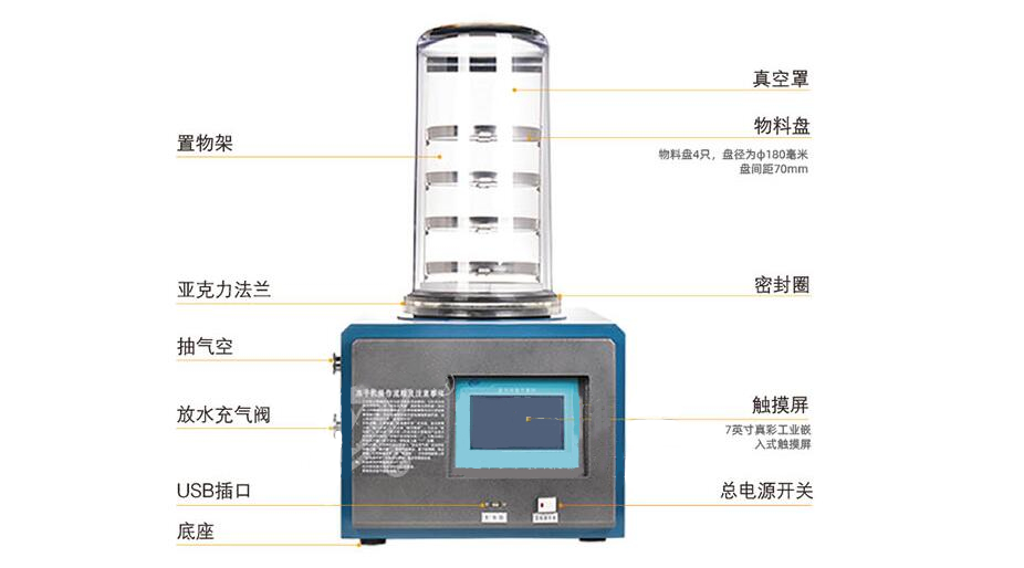 9、立式冷凍干燥機(jī)采用充氣閥,可充干燥氮?dú)饣蚨栊詺怏w。