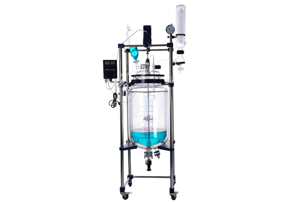雙層玻璃反應釜作為現代精細化工、生物制藥和新材料合成的理想教學、實驗、中試、生產設備,在國內市場中蘊含著巨大的潛力。是常用的生化儀器,廣泛地被現代精細化工,生物制藥,科研實驗等行業所選用。其可在恒速,恒力,恒溫的條件下做濃縮、蒸餾、回留、分離、提純反應。內層放置反應溶媒可做攪拌反應,夾層通過冷熱源循環,可使內層實現恒溫加熱或冷卻反應,可控制反應溶媒的蒸餾與回流。