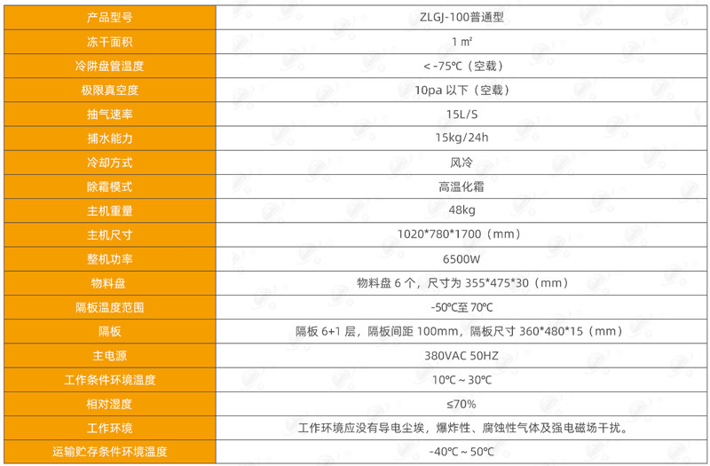 ZLGJ-200中式普通型真空凍干機技術參數: